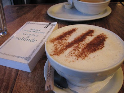Showing off my new companion, 100 days of ...uh years of solitude. The cover is perfect, its not glossy, but textured paper, not that anyone cares.... I sometimes wrap my novels in smooth brown paper, because it's textured and not slippery. ok I'll stfu.